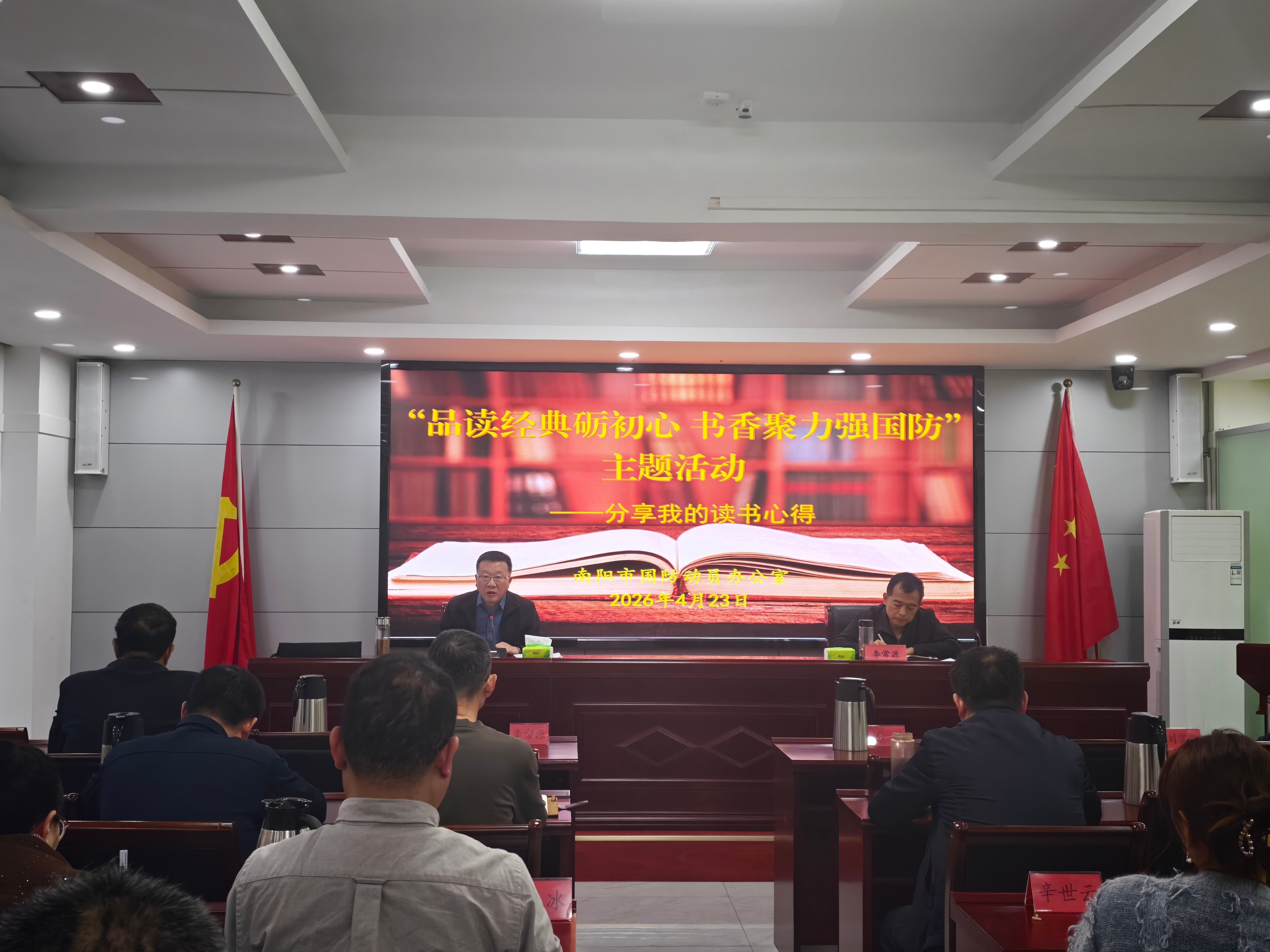 在首届全民阅读活动周到来之际,为激发广大干部职工的学习热情,扎实推进书香机关建设,4月23日,市国动办举办“品读经典砺初心 书香聚力强国防”全民阅读活动。办党组书记、主任赵阳出席活动,全体干部职工参加。